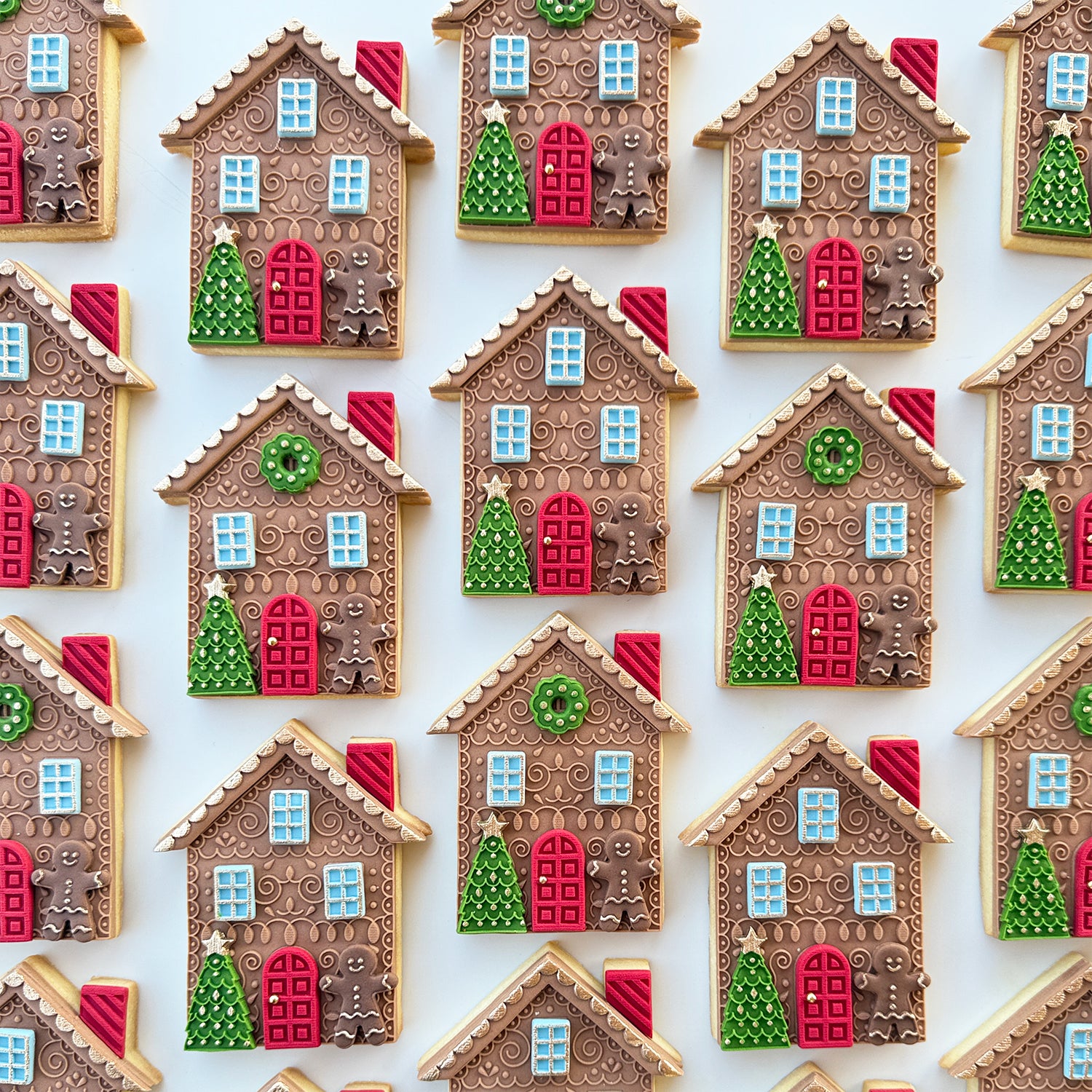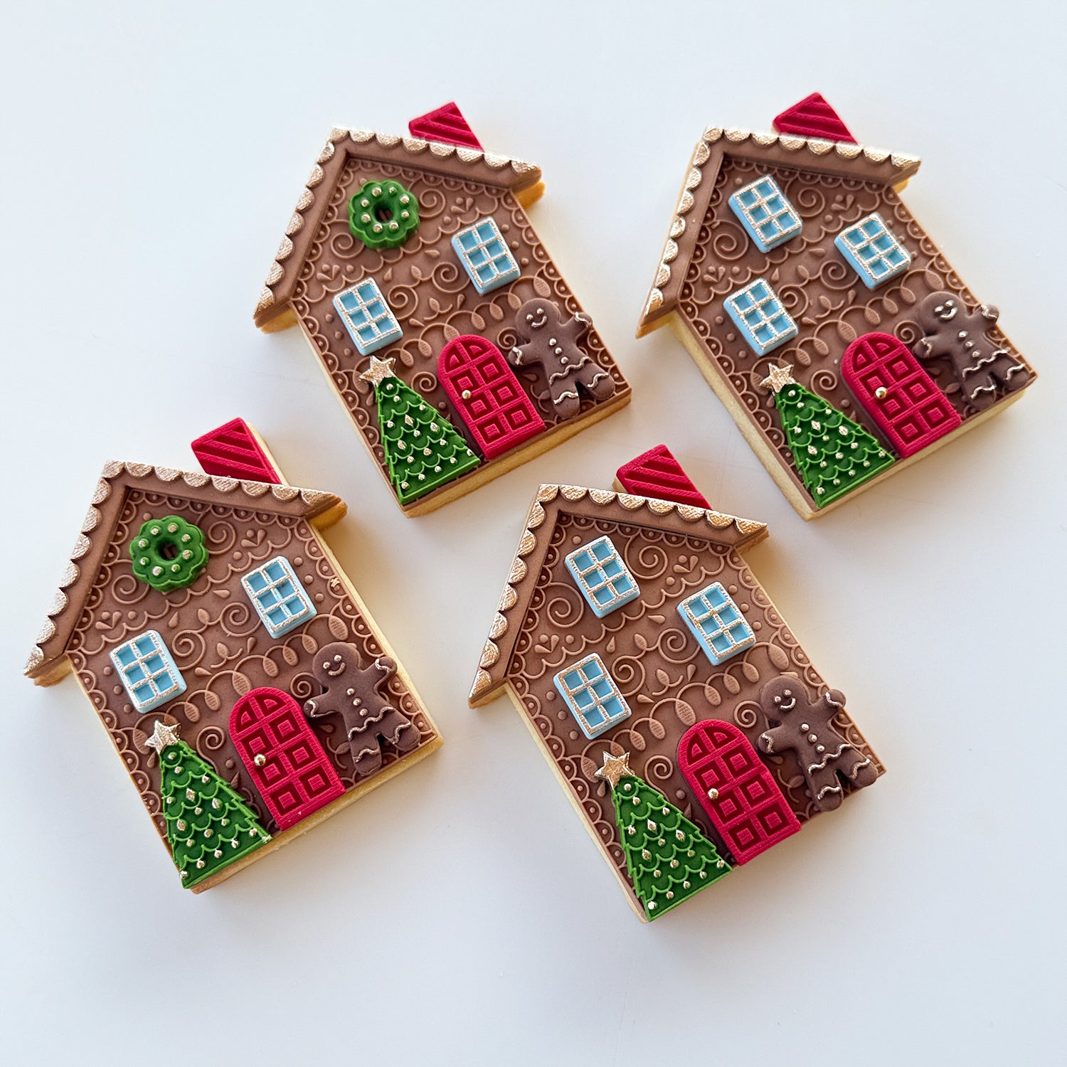 This single cookie decoration kit includes all the cutters and texturizers to create an original, intricately designed chalet you might picture in the Swiss Alps, adorned with a Christmas tree, a wreath, and even a gingerbread man!